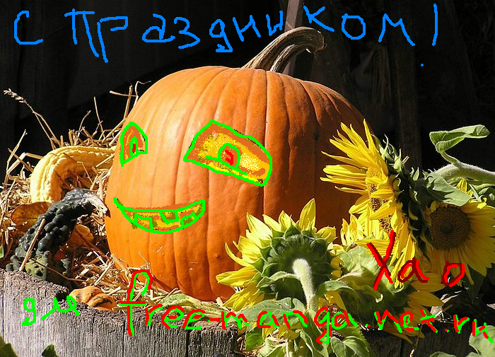 С Днем Всех Святых!!! Давайте сделаем свои тыквы по такому поводу^^ для этого вам нужны только: 1. Тыква 2. Пайнт или Фотошоп) (у кого с чем лучше ) 3. Ваша безграничная фантазия^^ Вояйте! Жду ваши шедевры))) P. S. - я несколько позже придумаю что-нибудь)